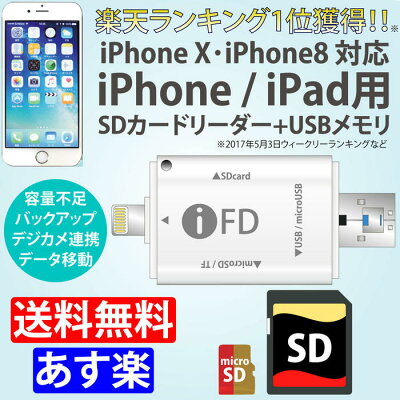 iPhone SDカードリーダー USBメモリ バックアップ iPhone6 iPad i-FlashDevice MicroSD TFカード SDカード micro USB アイフォン アイフォーン メモリースティック iPhoneX iPhone8 iPhone7 Android